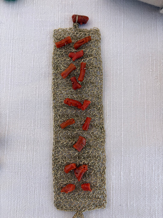 Braccialetto a Fascia Modello Bea - Pezzo Unico con Corallo Siciliano - ULTIMO DISPONIBILE