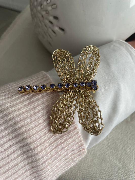 Spilla Dragonfly - Spilla Artigianale all'Uncinetto con Strass